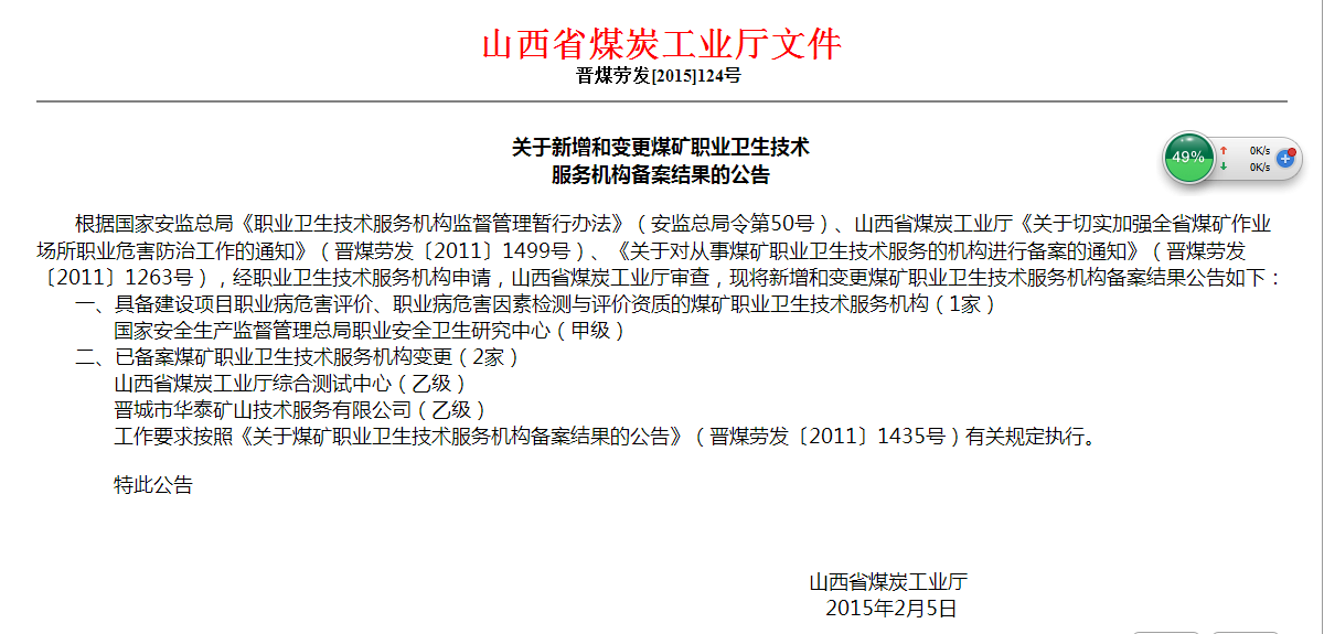 山西省煤炭工業廳備案